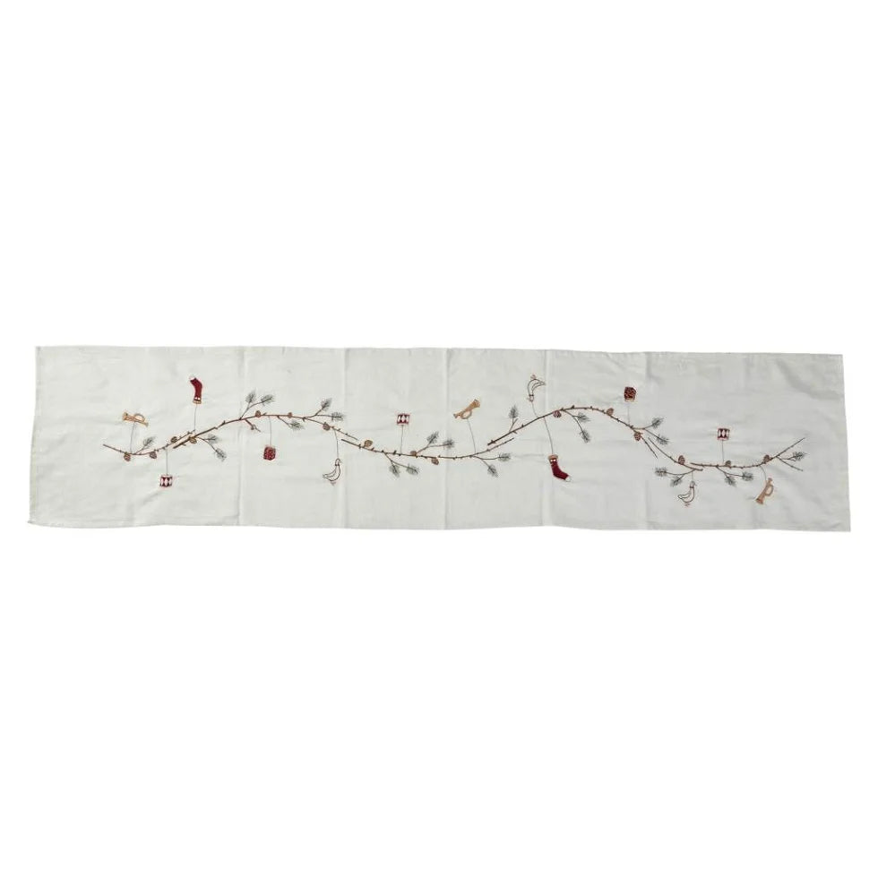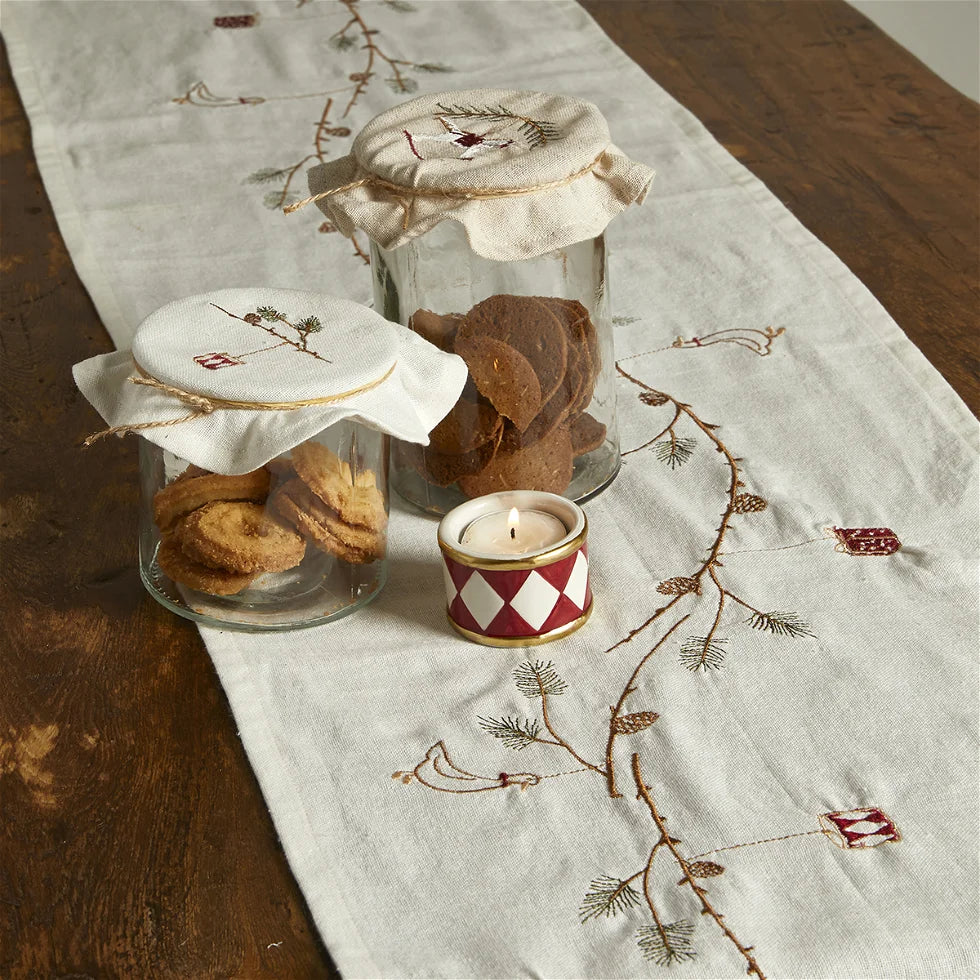 Den fineste bordløber med brodderi. Lavet i bomuld/hør.