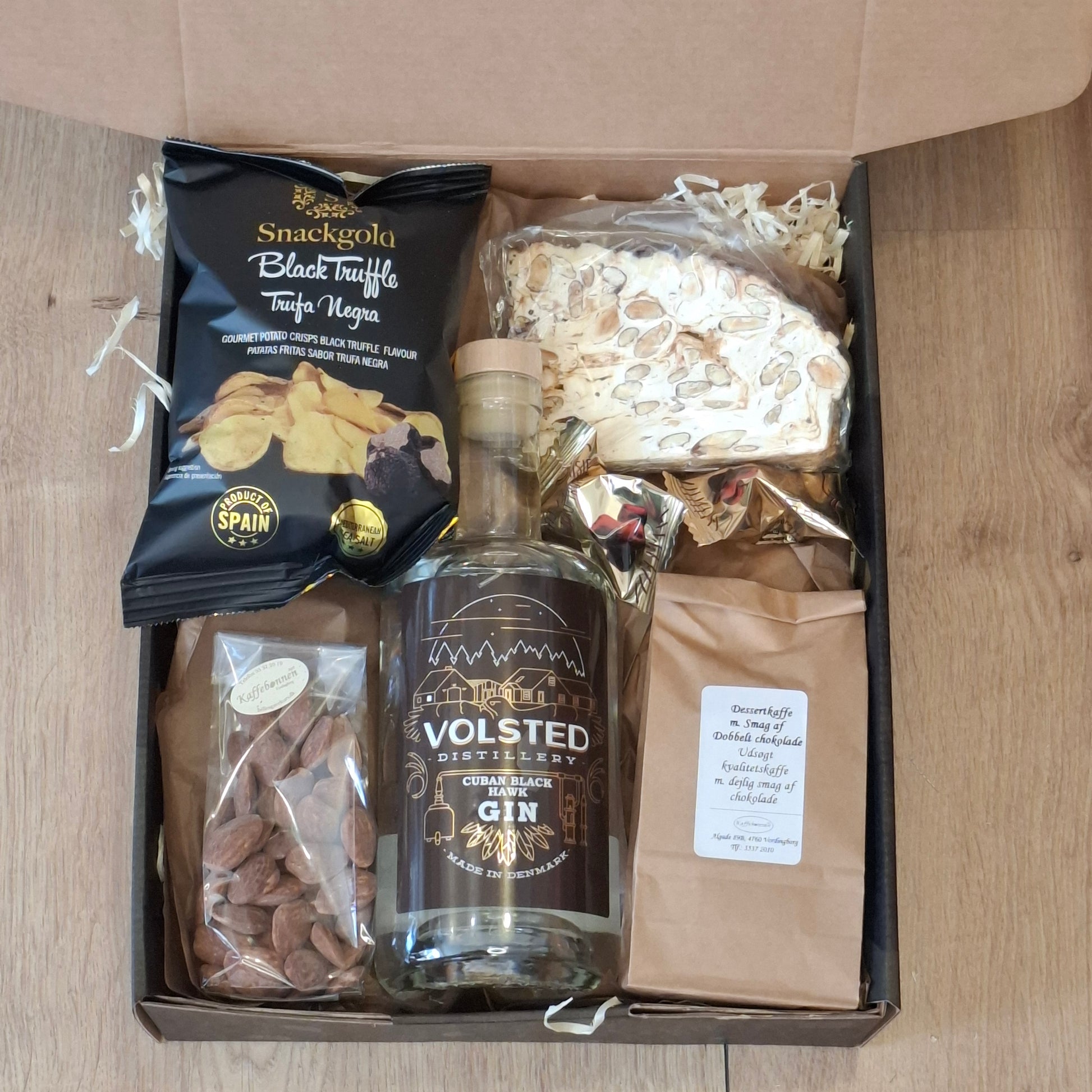 Den perfekte gave til gin elskeren, som har alt, men fortjener en opmærksomhed. Den smagfulde gave indeholder en smagsfuld dessertkaffe, delikate salte og søde delikatesser, samt en skøn og fyldig gin. En harmonisk blanding som skaber gode stemning.