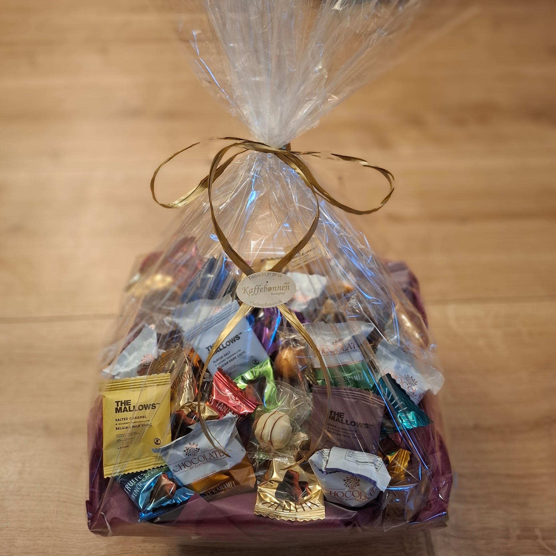 Indholdet varierer efter sæson og udvalg, men du kan forvente en skøn blanding af chokolade, bolcher, lakrids, vingummier, fyldte chokolader og andre søde specialiteter. Der er også mulighed for at vælge mellem kun indpakkede lækkerier, eller en blanding af både indpakkede og ikke-indpakkede lækkerier, så kurven passer præcis til behovet i jeres virksomhed eller hjem.