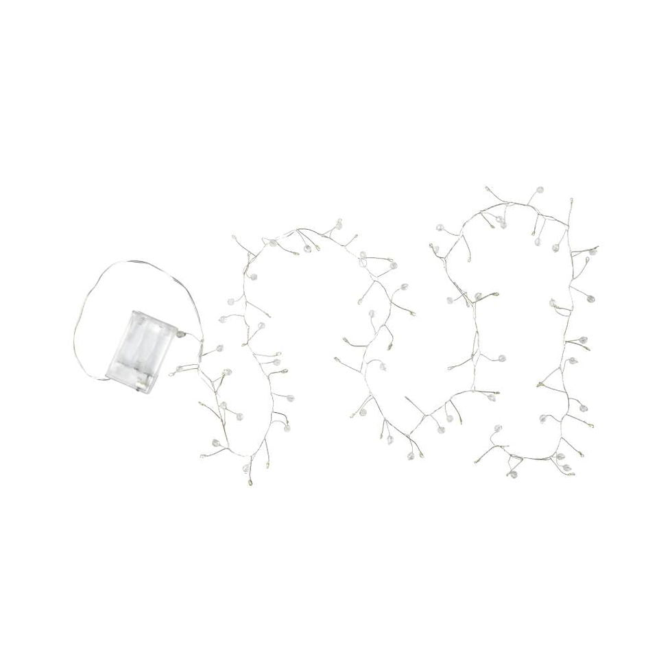 Total længe på lyskæden er 1,5m. Kan bruges på en gren, til at lægge ved en dekoration eller hvor man ellers lige vil have lidt hyggelig julelys.