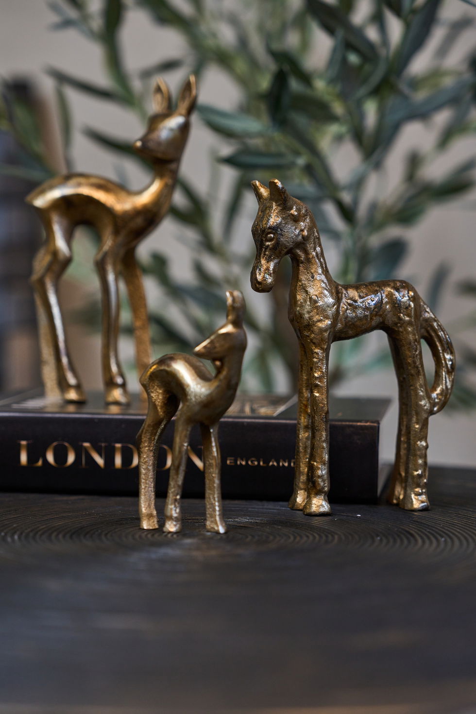 Dette stilrene rensdyr i aluminium og er et perfekt dekorativt element til hjemmet – især i juletiden. Det skinnende guld giver et moderne og raffineret udtryk, som passer godt på hylden, bordet eller som del af en gavekurv.